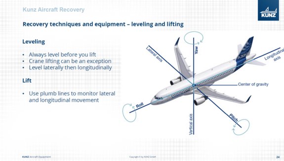 Customers learn to solve recovery situations using KUNZ leading edge aircraft movement equipment such as Aircraft De-bogging Systems, Dollies and Recovery Trailers by simulating recovery scenarios on aircraft.