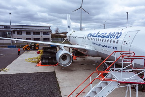 KUNZ Aircraft Recovery Training Academy teaches the customer the right way to solve recovery situations using KUNZ leading edge aircraft recovery equipment. In practical training, customers are able to perform recovery training on a discarded TU-134 A and A320. With this opportunity, KUNZ Aircraft Recovery Training Academy is on the one hand able to simulate all conceivable recovery scenarios and offers hands-on training on the other hand.